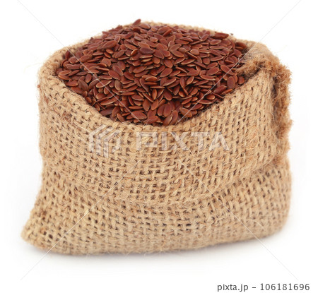 Flax seeds in jute bag