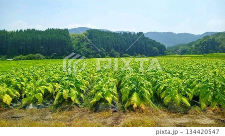 鹿児島県霧島市で栽培されている葉タバコ 一面緑色に広がる葉タバコの畑