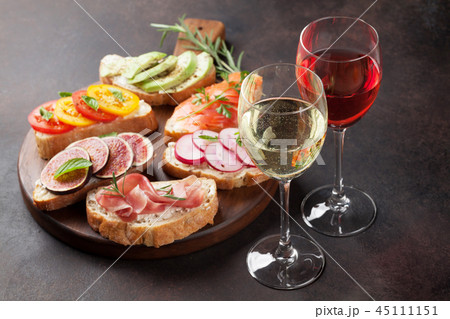 Brushetta or traditional spanish tapas