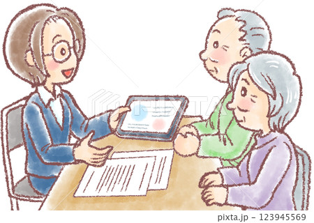 介護の相談_介護の相談打ち合わせ_タブレット_老夫婦