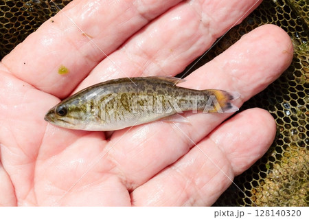 荒川支流の都幾川で掬ったコクチバスの幼魚