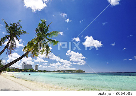グァム島タモンビーチ ヤシの木と白砂のビーチ