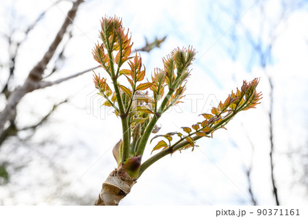 春に新芽が出たタラノキ【タラの芽/山菜】