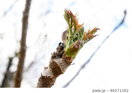 春に新芽が出たタラノキの先端【タラの芽/山菜】