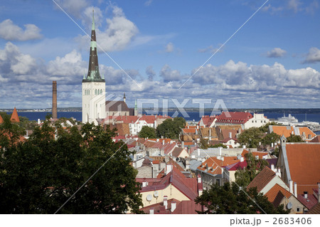エストニアの首都タリン 世界遺産の旧市街 聖オレフ教会から望む