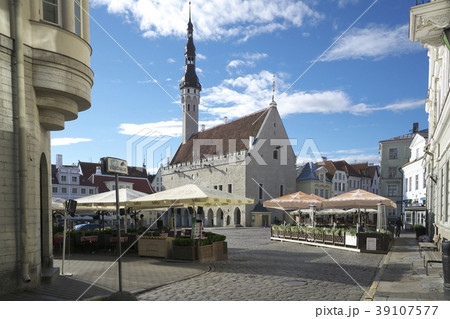エストニアの首都タリン 世界遺産の旧市街地 ラエコヤ広場と旧市庁舎