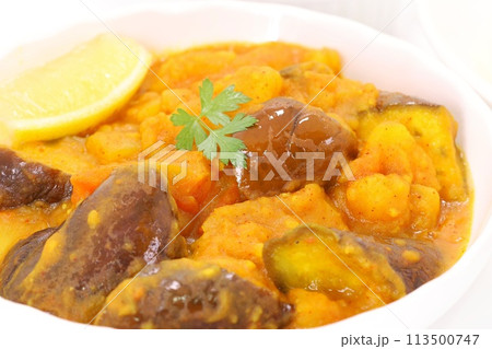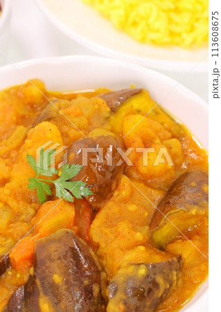 ネパール風ナスとジャガイモのドライカレー アル・ペンタ・タルカリ 明るい背景