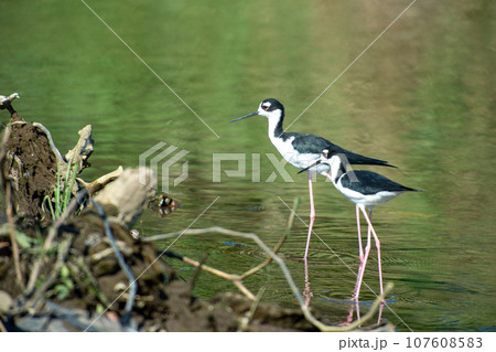 コスタリカの野鳥のいる風景(クロエリセイタカシギ)