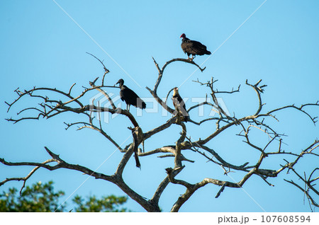コスタリカの野鳥のいる風景(クロコンドル・ヒメコンドル・キバラカラカラ)
