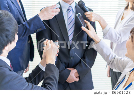 記者会見する男性ビジネスマン