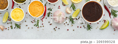 Different types of sauces in bowls