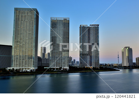 豊洲大橋から観たららぽーと豊洲高層マンションの夕景