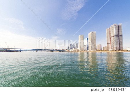 豊洲大橋から観たららぽーと豊洲高層マンションの風景