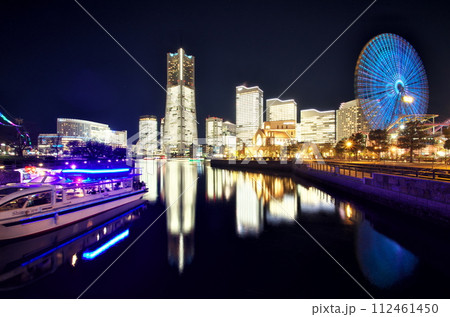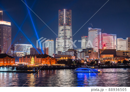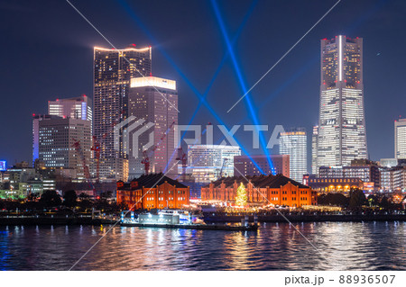 横浜/ みなとみらい21オフィス全館ライトアップ・大桟橋から(TOWERS Milight )
