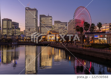 《神奈川県》横浜みなとみらいの夕暮れ・万国橋の眺め
