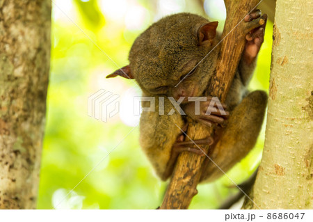 フィリピンのボホール島の寝ているターシャ