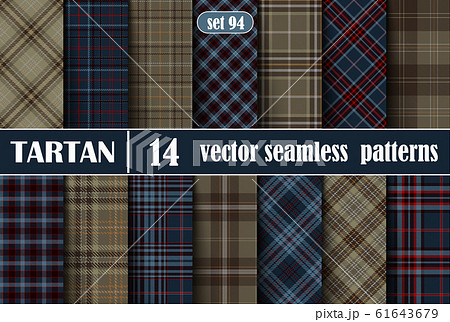 Set tartan check plaid. Seamless background textile. Pattern vector fabric texture.