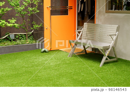 窓先にある憩いのベンチ
