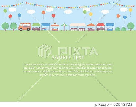 シンプルな春のマルシェの背景イラスト レイアウトが上の遠景