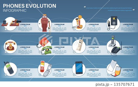 Phones evolution infographic. Device models, creation year, vintage models, modern smartphones, distance communication, timeline banner design, year of invention, tidy vector concept