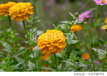 Zinnia Blooms in Warm Hues at a Hokuto Florist in Yamanashi Prefecture Japan