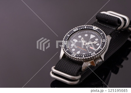 Automatic mechanical diver wrist watch in metal case with deep blue deal