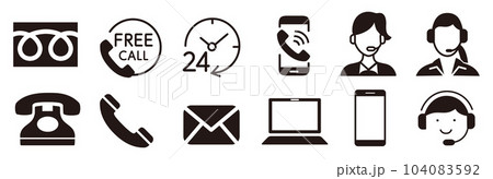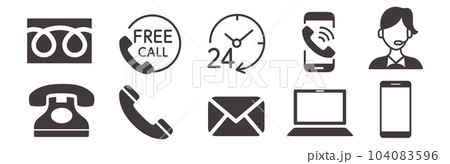 いろいろな電話のシンプルアイコンセット素材、ベクター