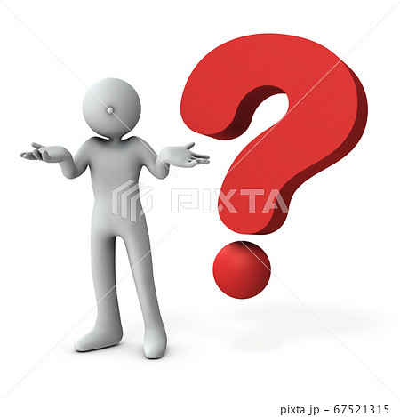 難関な疑問に戸惑う人物。大きなクエスチョンマーク。冗談と照れ隠し。