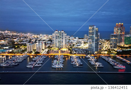 Summer vacation. Luxury South beach aerial marina. Luxury yacht. Miami south beach aerial view. Yacht club. Marina in Miami, Florida. Skyscraper. Downtown Miami marina with luxury yacht