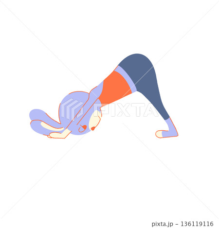 白背景のダウンドッグポーズをする若い女性 ヨガ
