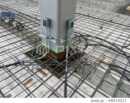 土間打設前の鉄骨柱周りの様子