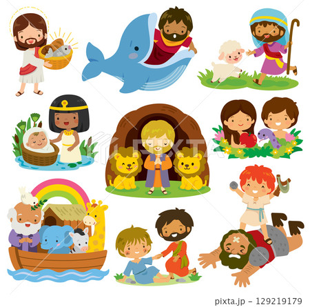 Bible stories images for kids. Cute illustrations of famous biblical characters and scenes