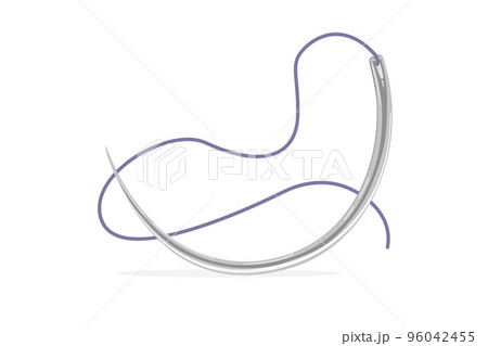 Surgical needle with attached suture material. Cartoon style. Vector illustration isolated on white background.