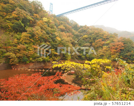 奥秩父もみじ湖 滝沢ダム ダム下の吊り橋付近の風景 初夏の季節