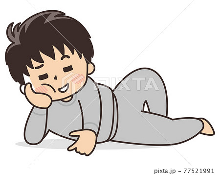 スウェットを着た若い男性がだらけている 寝間着 部屋着
