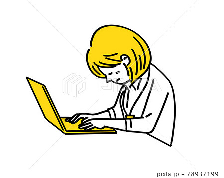 ノートパソコン 女性 仕事 居眠り疲れ 疲労 シンプル イラスト
