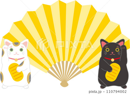 扇_扇子_招き猫二匹と金色の扇子_お年玉_新札紙幣_小判_松竹梅