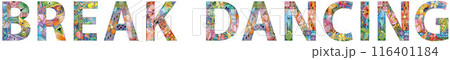 Words BREAK DANCING in the style of abstract hand drawing. Letters with ornament