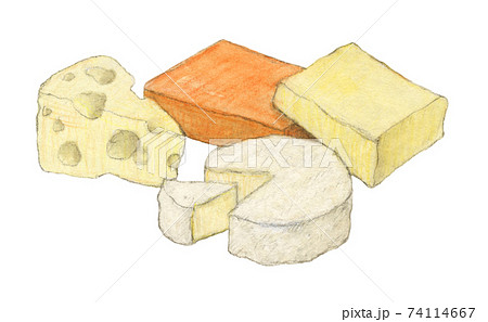 ナチュラルチーズ 手描き 水彩色えんぴつ画