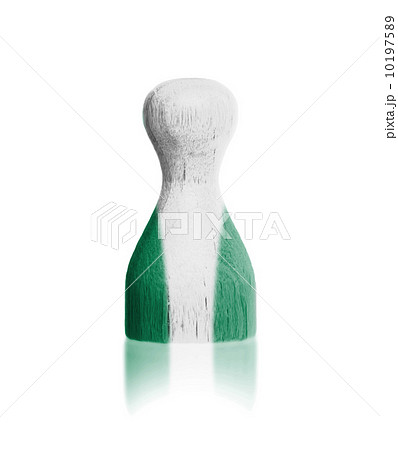 Wooden pawn with a painting of a flag