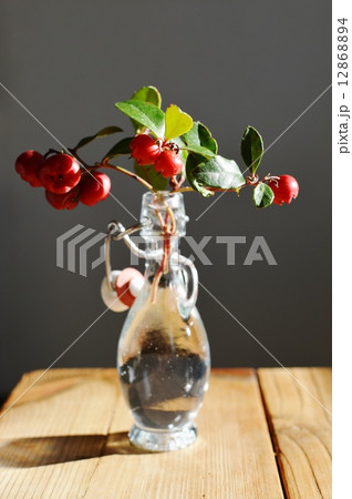 窓辺のトルコ桔梗とチェッカーベリー