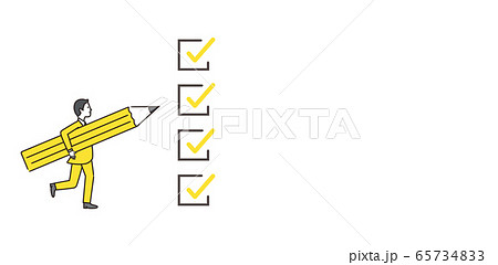 チェックイメージとペンを持つ男性のイラスト