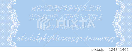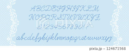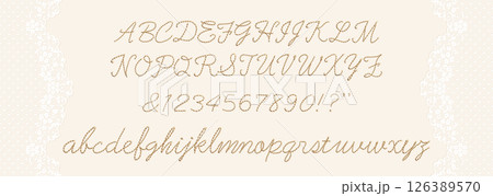 チェーンステッチ筆記体文字とアンティーク風レースフレームのベクターイラスト