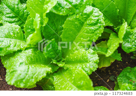 サンチュ、ベランダ菜園、野菜イメージ素材