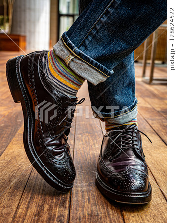 新品で茶色いシボ革のダブルモンクストラップの革靴