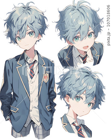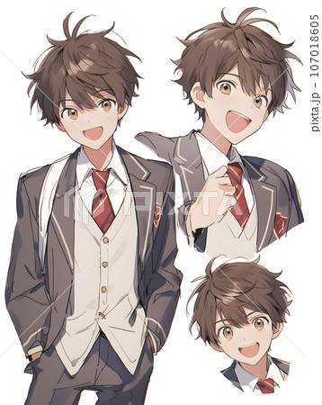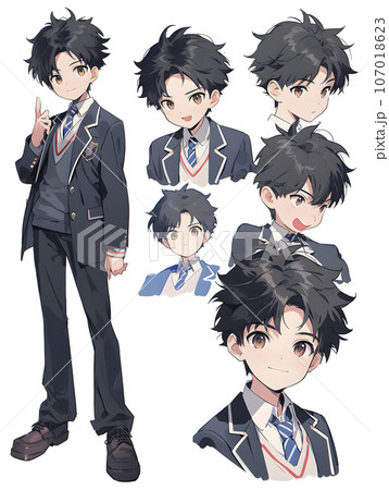 男子高校生のキャラクターシート デフォルメイラスト(AI生成画像)