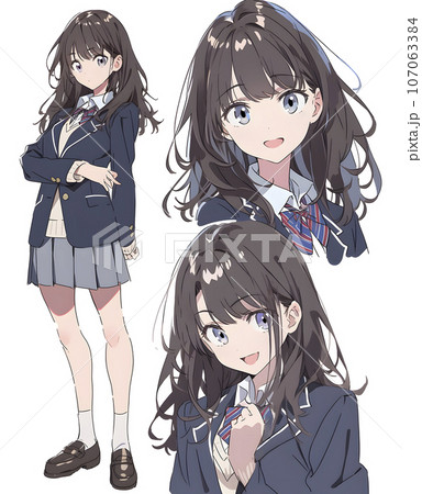 女子高生のキャラクターシート いろんな表情(AI生成画像)