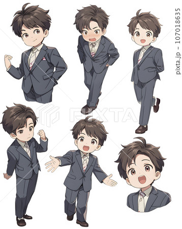 ビジネスマンのキャラクターシート デフォルメイラスト(AI生成画像)