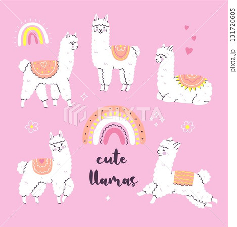 A set of cute white llamas. Vector graphics.
