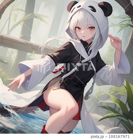 チャイナドレスを着たアニメキャラ風の女の子(中華風背景あり)